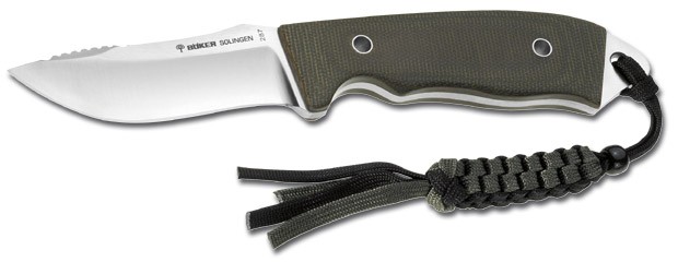 Nejnovějšího vydání vysoce uznávaného výrobce ze Švýcarska Thomase Kuenze. Tento model je vybaven na rukojeti zelenou Micartou, aby odpovídaly potřebám nejen lovce, ale i každého zálesáka. Dokonce i mokré nebo vlhké ruce mohou zajistit pohodlné a bezpečné uchopení tohoto kusu. Pouzdro je černé kožené.Celková délka: 19.0 cm Délka čepele: 8,1 cm Váha: 129 g čepele tloušťka: 4 mm.Ocel: D2 Rukojeť:Micarta