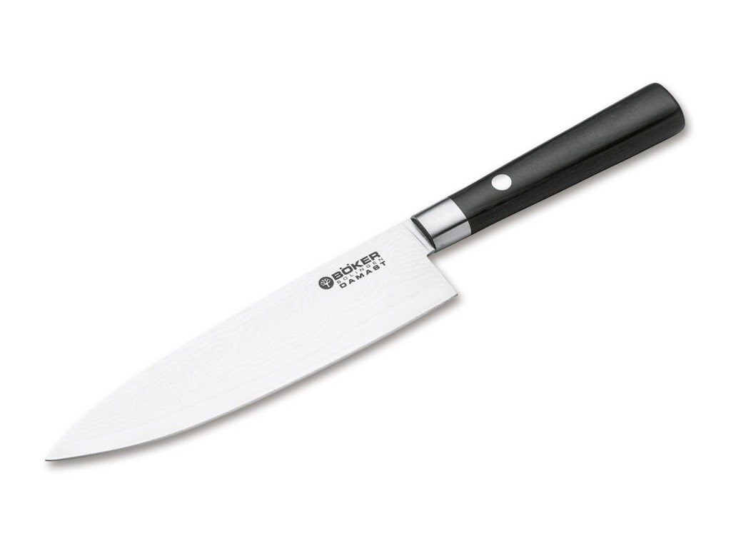Tyto stylové kuchyňské nože z Bokeru jsou opravdu uměleckým dílem. Damašková ocel vyrobena z 37 vrstev nerezové oceli VG10. Poskytuje vynikající stabilitu ostří při každodeních řezných úkonech. Rukojeť je z černého vrstveného dřeva, nerezovým kroužkem a čepem. Každý nůž je dodáván v dárkové krabičce vyložené hedvábím.
