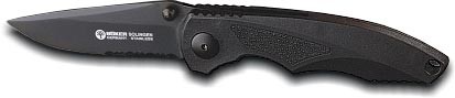 Univerzální nůž, trvanlivá ABS rukojet',pouzdro na opasek.Nůž lze otevřít a zavřít jednou rukou a váží pouze 3.2 oz. Teflonový nerezový nůž Solingen, částečně zoubkovaný. Černá ABS rukojeť s vložkou z Kratonu.Celková délka:21.0cm.Délka čepele:9,0cm.Váha:90 g.Ocel:4034.Rukojet':Plast.