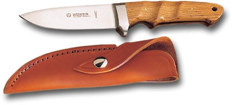 Rukojet' s drážkami na prsty zdůrazňuje high-třídu a pohodlí při práci tímto nožem.Ocel 440-C , růžové dřevo palisandr na rukojeti a pouzdro z pravé kůže.Celková délka: 22.0 cm Délka čepele: 10,0 cm Váha: 170 g.