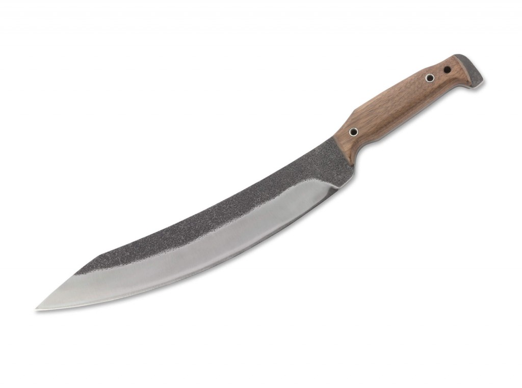 Za toto ztvárnění je zodpovědný designér Liong Mah. Jeho návrhy jsou známé svou funkčností a praktičností. Mahchete má rukojeť, která je posunuta směrem nahoru pro maximální sílu hackování. Na rukojeti jsou ořechové šupiny s koncovou hlavicí pro bezpečné uchopení. Díky svému full tang designu má Mahchete mimořádnou pevnost a čepel z uhlíkové oceli 1075 přispívá svým dílem o tloušťce 4,6 mm. Rustikální úprava čepele je tepaná podél líce a satinovaná na ostří. Tato kombinace dává Mahchete téměř archaický charakter. Obsahuje zesílené nylonové pouzdro s plastovou vložkou.