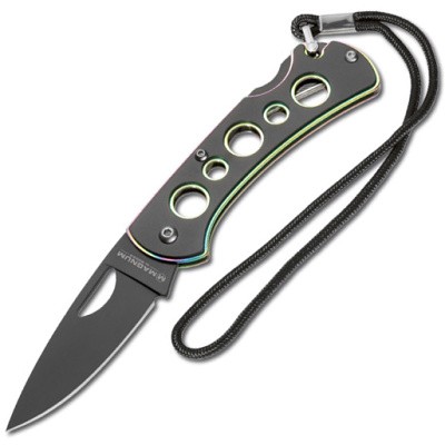 Tento minimalistický nůž je nejen pro oko, ale také je technicky propracovaný a vysoce funkční. Černý 440 nerez nůž je uzamčen Lockbackem.Rukojeť je vyrobena ze duhou-barevných desek.Vzhledem k extrémně ploché konstrukci se lehce vejde do každé kapsy.