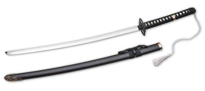 Tradiční samurajský meč představuje ostří 440 nerezové oceli, která je leštěná a má obrysy Hamon (kalící linky). Tsuba se skládá z černé litiny s dvěma velkými otvory. Rukojeť představuje klasickou zabalenou rukojeť s rejnočí kůže s atraktivním podkladem. Dřevěný plášť je potažen matně černým lakem.