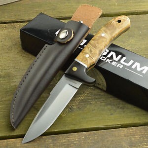 Funkční a stylový lovecký nůž s rukojetí z palisandru,440 nerezový nůž .Tmavě hnědé kožené pouzdro.