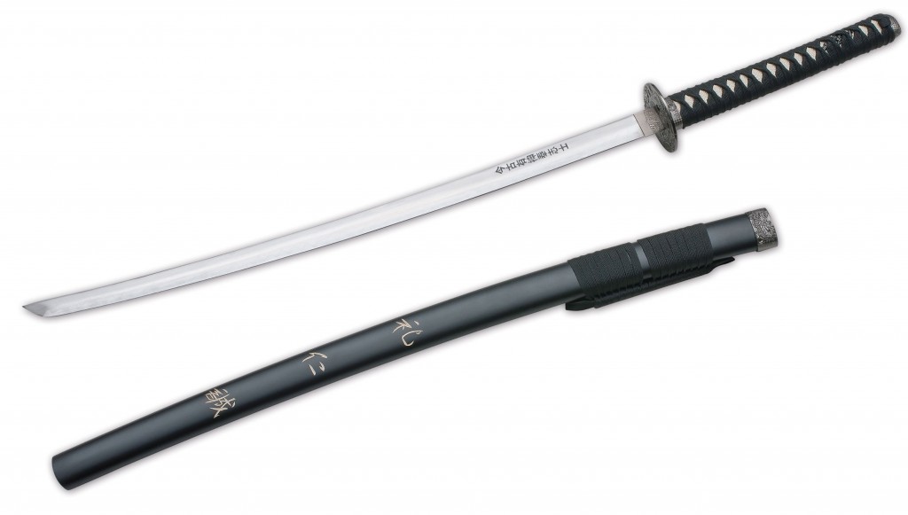 Nádherný a bohatě zdobený meč může to být ústředním bodem vaší sbírky.Malované černé pouzdro vypadá dobře.Pochva nese ručně vyřezávané kanji (charaktery) "štědrost, soucit a upřímnost." Znaky na ostří znamenají: "Od dávných dob, Bůh je s těmi, kteří slouží s důstojností a úctou.". Vč. stojánkut ze dřeva.