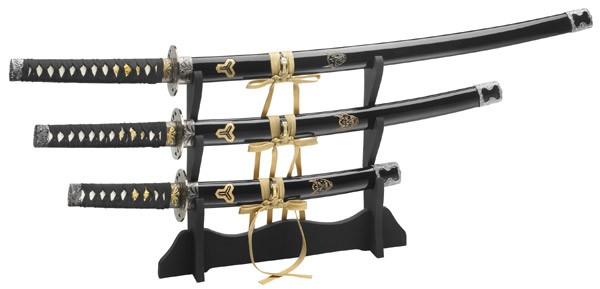 Tyto meče jsou jedním z nejznámějších samurajských mečů Hattori Hanzo, který se narodil v roce 1541 v provincii Mikawa. V sousední provincii Koga je rodištěm ninjutsu a ninji. V těchto podmínkách vyrůstal vynikající bojovník. Jeho první ostrý boj byl ve věku 16 let a tak rychle přišel ke chvále a uznání.Meče jsou vyrobeny z uhlíkové oceli a mají dekorativní zkosení. Tradičně balené rukojeti mají menukis a Roche kůže-jako povrch. Tsuby jsou vybaveny jednotnýmy otvory. Pouzdra jsou zdobeny ornamenty. Tato rozsáhlá sada se skládá z Tanta, wakizashi a katany,z černě lakovaného stojanu na meče.