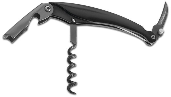 Tradiční nůž pro sommeliéry. Zoubkovaný nůž s jeho zakřiveným ostří rychle odstraní pečeť korku. Vývrtka a otvírák na láhve vestavěný v rukojeti, je charakteristický pro tento nůž . Všechny komponenty z nerezové oceli vysoce kvalitním titanovým povrchem. Pohodlná ergonomická rukojeť.