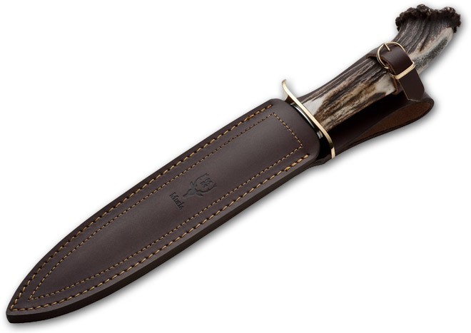 BW-24S Je lovecký nůž z mosaznou záštitou a jelením parožím. Saténově upravená čepel je vyrobena ze španělské oceli MOVA, molybdenu vanad oceli s tvrdostí 57 až 61 HRC Rockwell. Dodáváno s koženou pochvou.