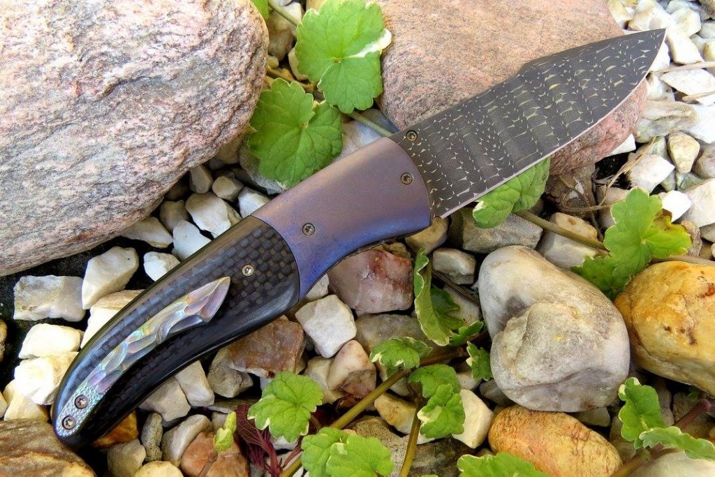 Nerez damaškový zavírací nůž s titanovými prvky.