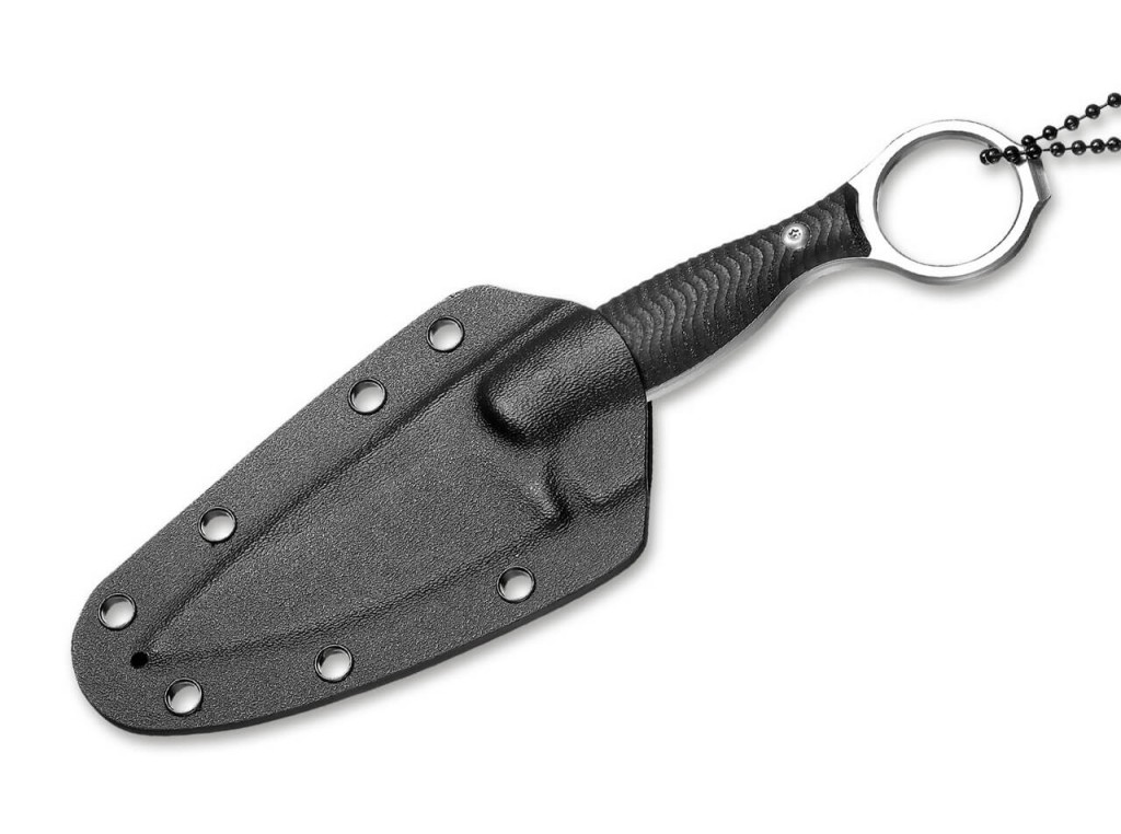 The Accomplice od Johna Graye je velmi kompaktní a dobře vyvážený EDC nebo záložní nůž, jehož štíhlá rukojeť a kroužek na konci rukojeti kombinují skvělé pohodlí při nošení s diskrétností a vynikající polohou uchopení. Dá se nosit i jako velký nůž na krk. Váhy G10 mají přilnavou frézovanou strukturu a jsou plně tvarované, což umožňuje, aby se komplic zformoval do vaší ruky. Čepel z oceli 14C28N Sandvik se saténovým povrchem. Dodávka obsahuje pochvu Kydex, řetízek s korálky a adaptér na opasek.