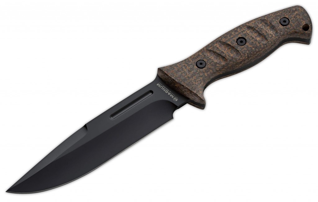 Ideální společník pro jakoukoli misi. Masivní černěná čepel z nerezové oceli 440 prochází celou rukojetí až na konec. Šroubované rukojeti Micarta včetně vyfrézovaných drážek poskytují bezpečný úchop. Do otvoru pro šňůrku lze připevnit poutko. Objemná, mírně břichatá čepel oštěpového hrotu má dekorativní ostří. Obsahuje nastavitelné nylonové pouzdro s přední přihrádkou a nožní pásy.