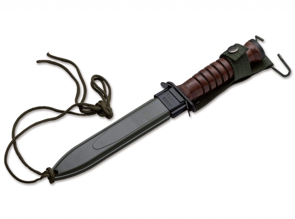 Zákopový nůž M3, navržený v roce 1943, byl určen k použití jakýmkoli americkým vojákem během druhé světové války, který nebyl vybaven bajonetem? vojáci s pistolemi, samopaly, lehkými a těžkými kulomety atd. Prvními jednotkami, které dostaly M3, byly Airborne. Pěchotní jednotky Mountain Ranger a Glider. Mezi devíti výrobci, kteří M3 během války vyrobili, byla společnost H. Boker & Co. s celkovým počtem 31 300 kusů, což bylo nejmenší množství. K 65. výročí. Boker Plus znovu představuje tento klasický kus bojového příboru spolu s autentickou pochvou US M8A1. Černě potažená čepel je vyrobena z vysoce uhlíkové oceli SK-5 a má originální čepel H. Boker & Co. Rukojeť je vyrobena z naskládaných kusů kůže. Aby byla zajištěna kvalita M3, každý nůž má laserem vyryté sériové číslo.