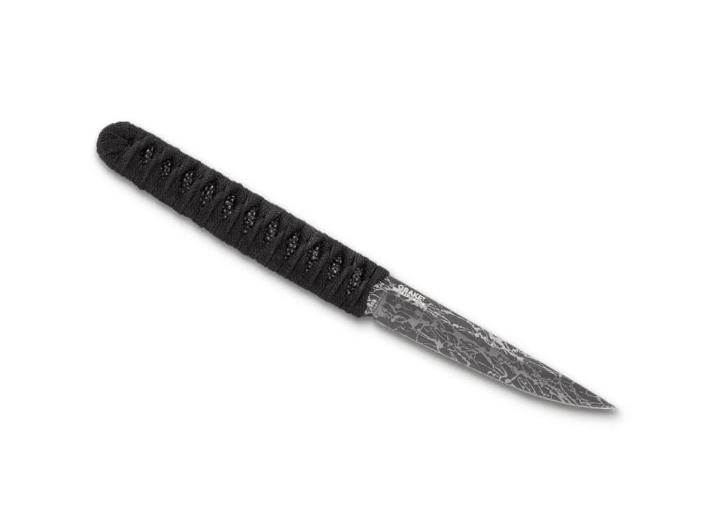 CRKT Obake, navržený Lucasem Burnleyem, je jednoduchý, takticky inspirovaný EDC s čepelí omytou kyselinou. Umělá kombinace klasického tvaru nože a moderních materiálů je zredukována na to podstatné: pevný kus oceli 8Cr14MoV, tradičně obalená rukojeť a neobvyklá úprava Acid Wash. S tenkým zytelovým pouzdrem, šňůrkou a korálkem lebky.