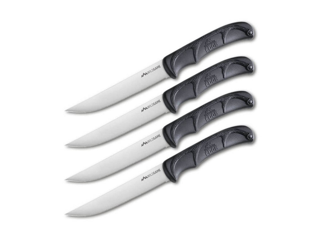 Ani u stolu by se myslivec neměl obejít bez osvědčené kvality. Outdoor Edge vyvinul správnou odpověď a 4dílnou sadu nožů na steak z divoké zvěře. Nože jsou vybaveny čepelí 420J2 a bez námahy proříznou i ty nejtlustší steaky. Rukojeti jsou vyrobeny z černého TPE s ražbou losího parohu. Tato sada steakových nožů je perfektním tipem na dárek pro každého myslivce.