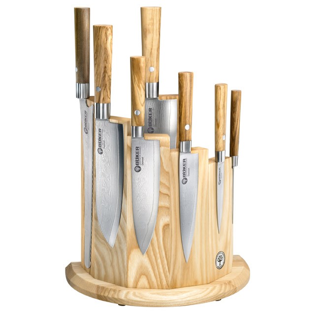 Úspěšná řada kuchynských nožů s rukojetí z olivového dřeva, které je dodáváno ze středomoří. Je ručně vybíráno z těch nejlepších kusů dřev, proto zaručuje nevětší kvalitu pro tyto nože. Teplý tón a živý pocit ze dřeva, činí přípravu potravin o to více zábavnou. Materiál čepele je z damaškové oceli VG10.