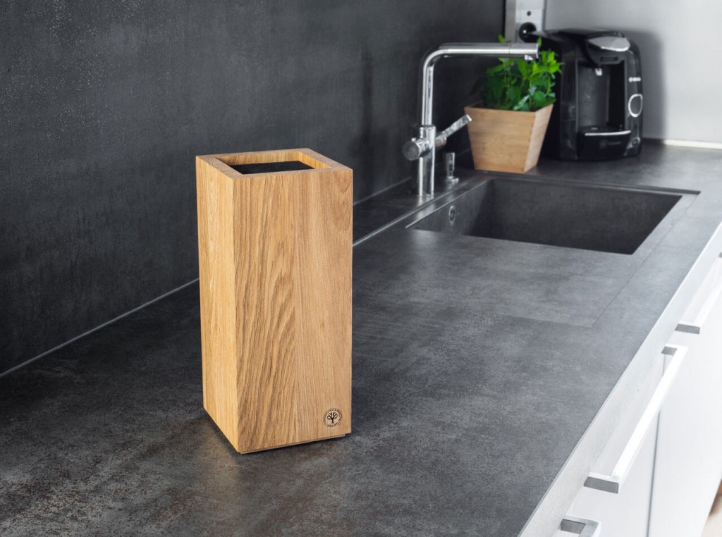 Boker Knife Block Square promění vaši kuchyni v designový kousek. Vysoce kvalitní blok z masivního dubu zajišťuje bezpečné postavení a zdá se, že se vznášel nad pultem díky své jemné stínové mezeře. Jednotlivé vzory dřeva dělají z každého nože jedinečný kus. Krásný dubový blok byl také kartáčován, aby získal krásné zrno. Blok na nože má dostatek místa až pro deset nožů a nabízí flexibilní skladování. Boční strany jsou vybaveny magnety, takže si své oblíbené nože můžete vystavit a mít je stále po ruce. Každý blok nože má jemné razítko značky. Vložku z jemných plastových štětin lze vyjmout pro čištění. Nože nejsou součástí dodávky. Výška: 28 cm.Šířka: 12 cm