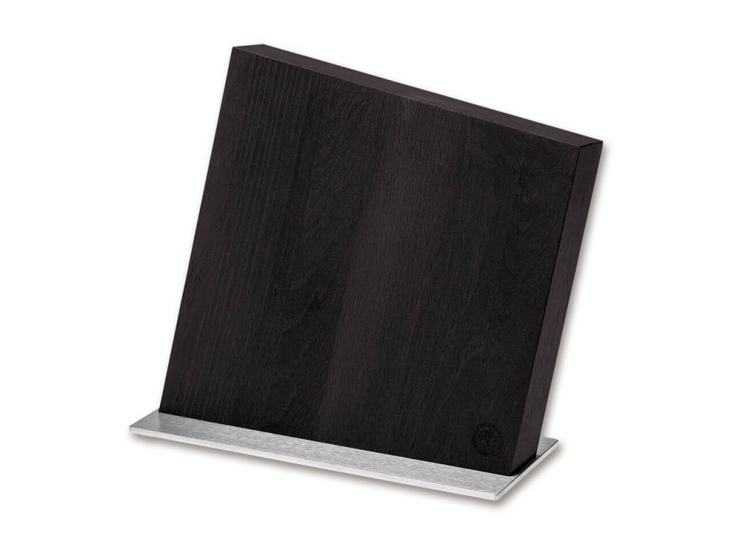 Ručně vyráběné nože si zaslouží atraktivní skladování. Boker Knife Block Style je k dispozici v masivním kartáčovaném dubu, ořechu a kouřovém dubu. Díky kombinaci prémiových materiálů z masivního přírodního dřeva a broušené nerezové oceli je dokonalým exkluzivním doplňkem do každé kuchyně. Minimalistická, prostorově nenáročná konstrukce pojme až osm nožů, a to díky skrytým magnetům. Šikmý dřevěný blok stojí bezpečně na pevné nerezové základně. Gumové nožky na spodní straně nerezové desky zabraňují posunutí bloku nože a případnému poškrábání pracovní desky. Levý dolní roh byl pečlivě označen jemným logem Boker. Nože nejsou součástí dodávky. Výška: 24,5 cm Šířka: 10 cm Hloubka: 25 cm