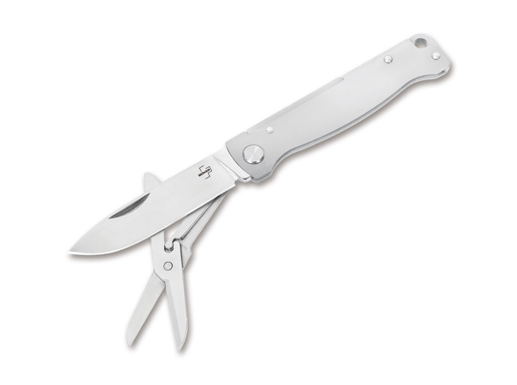 Bezstarostný Boker Plus Atlas Multi je spolehlivý kapesní nůž s tělem z nerezové oceli. Minimalistická konstrukce je extrémně robustní a činí z tohoto šikovného nože perfektního společníka ve všech situacích. Saténová čepel droppoint z 12C27 se otvírá hřebíkem a snadno se vyrovná se všemi každodenními úkoly řezání. Atlas Multi je také vybaven praktickými nůžkami. S otvorem na šňůrku a sponou (sklopné/pravé).