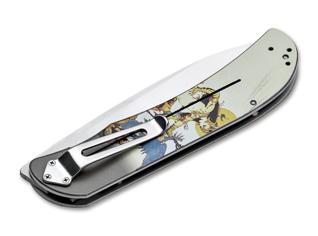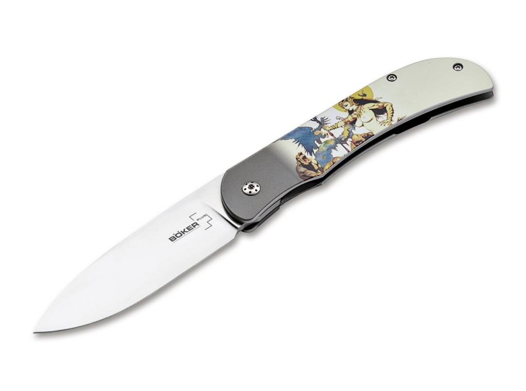 Tato jedinečná verze oblíbeného Exskelibur nabízí vysoce výkonnou čepel z oceli 440C a syntetické váhy rukojetí zdobené slavným dílem Franka Frazetty „Ghoul Queen“. Obsahuje oboustranný kapesní klip.