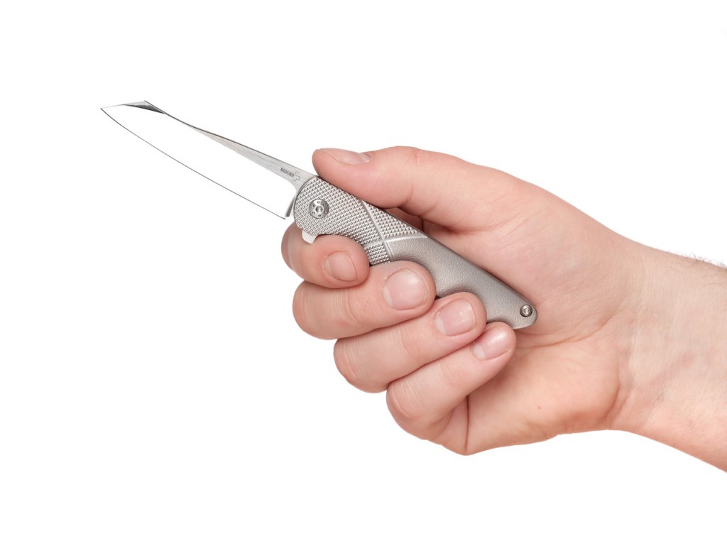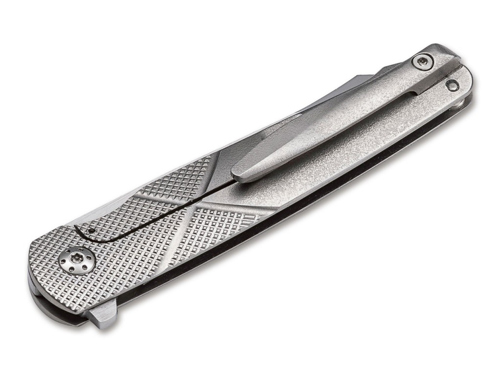 Výjimečně štíhlé a elegantní linie Boker Plus Gent-X jej označují jako opravdový gentlemanský nůž. Titanová rukojeť má povrchovou úpravu z pomerančové kůry a nápadný diamantový šek na přední straně. Na zadní straně je titanový klip. Čepel s charakteristickým hrbolem má propracovaný dvoubarevný povrch, kuličková ložiska a ploutev k otevření.