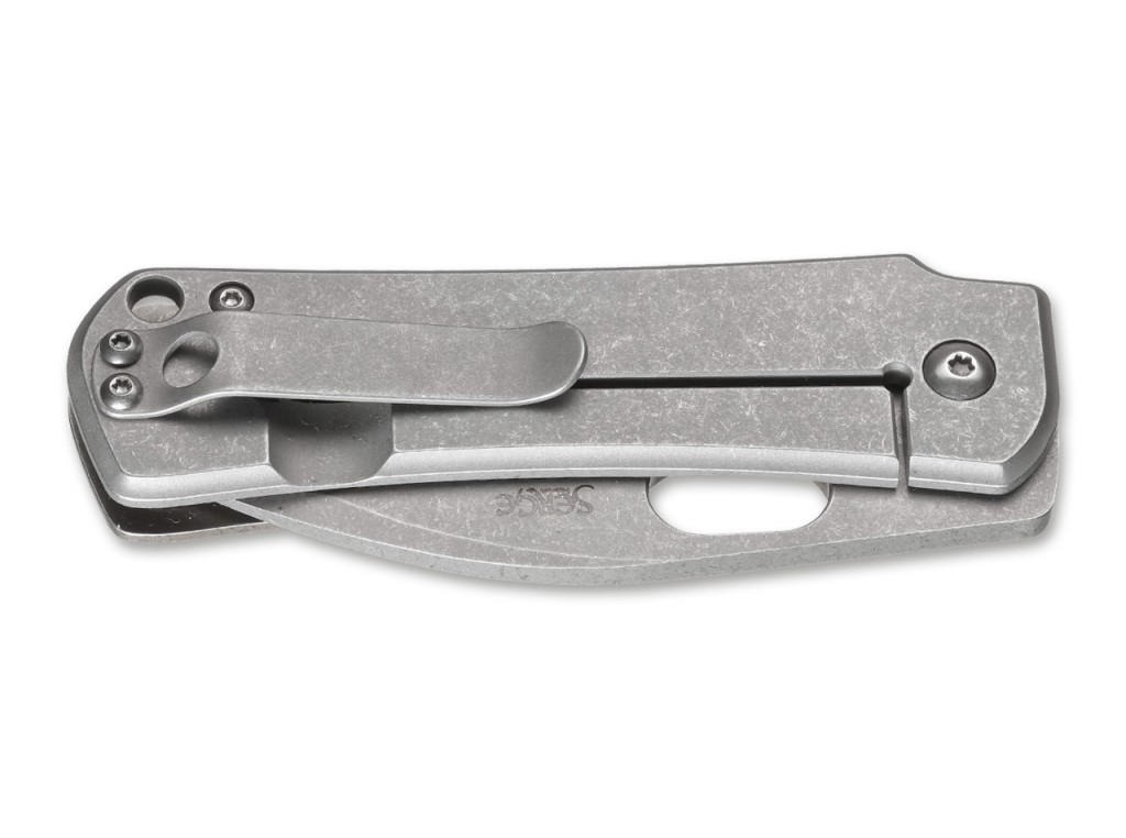 Serge Panchenko má díky svému Lanceru již velkou fanouškovskou základnu. Boker Plus Gust je mnohem robustnější a praktičtější, navržený jako rámový rám z nerezové oceli. Tlusté stupnice rukojeti s jejich typickým frézovaným vzorem a bronzová přední stupnice dávají pocit uklidňující solidnosti. Čepel poryvu je vyrobena z D2. Celý nůž má povrchovou úpravu kamenem, což mu dodává atraktivní vintage vzhled. S klipem (výklopným).