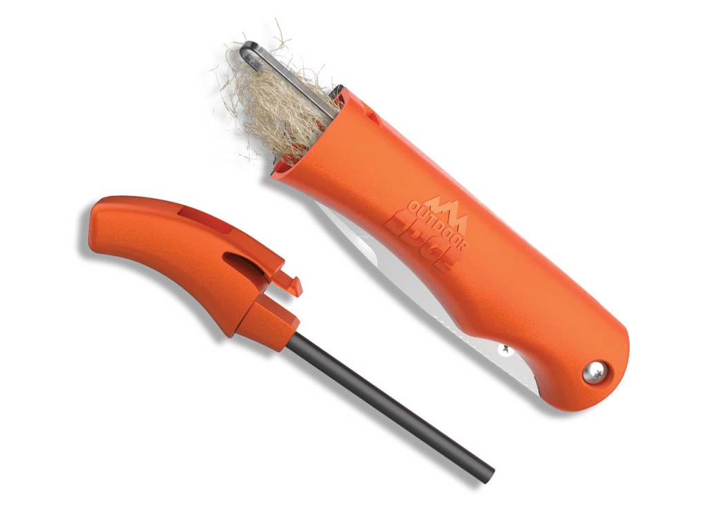Kompaktní a lehký venkovní nouzový nůž s integrovaným zapalovačem, zapalovačem a hlasitou píšťalkou. Čepel je zajištěna zámkem vložky. Rukojeť z nerezové oceli a ABS v signální barvě.