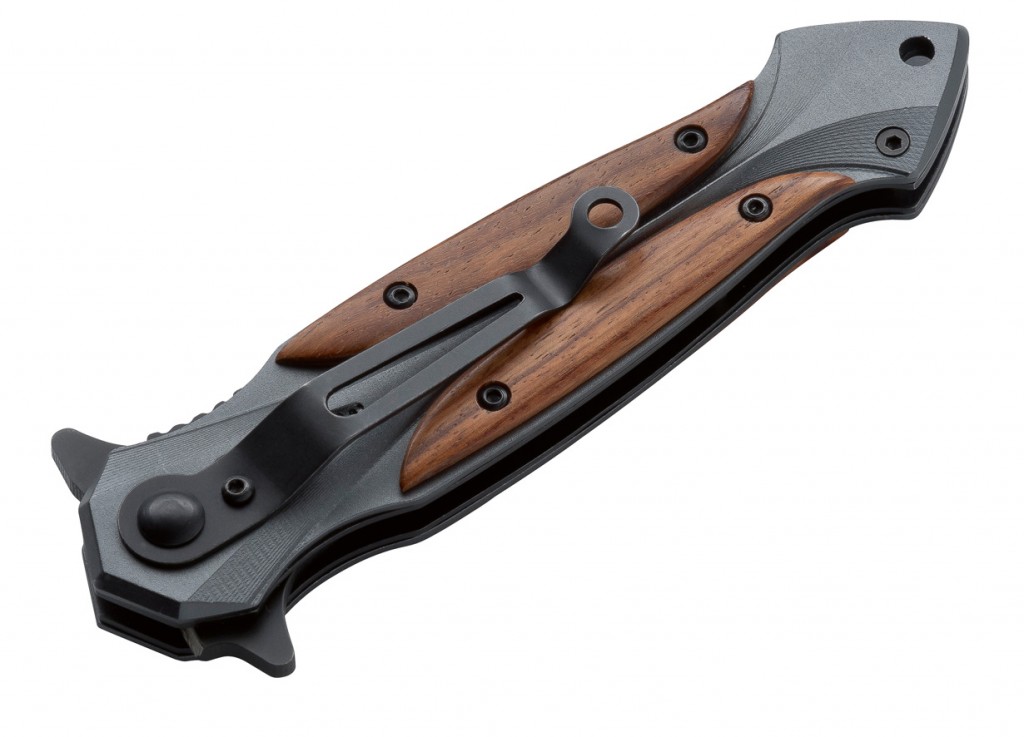 Futuristický vzhled moderního nože, má čepel z nerezové oceli 440. Čepel je jištěna pojistkou Linerlock. Tvarovaná rukojeť padne velmi pevně do ruky.