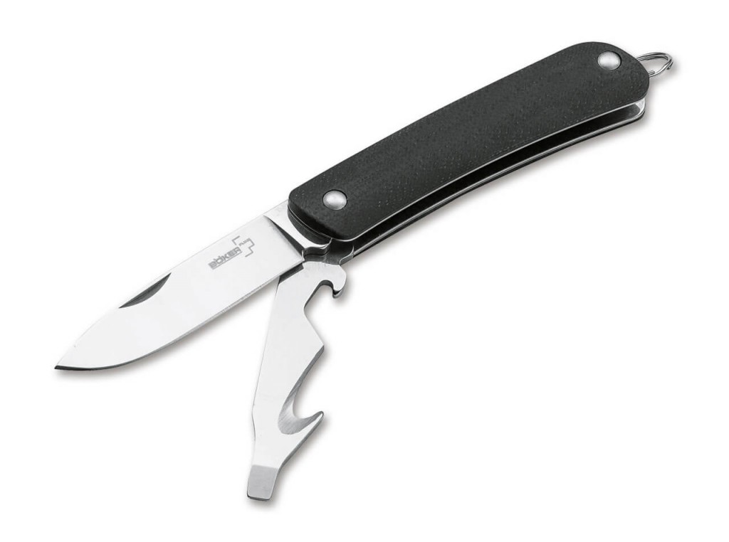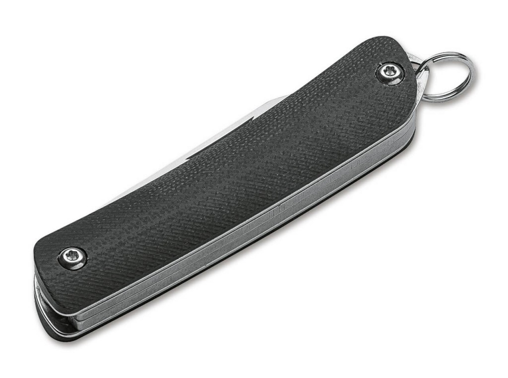 S délkou čepele 5,2 cm je Boker Plus Tech Tool Mini mnohem univerzálnější, praktičtější a efektivnější než mnoho jiných nožů na klíčenky. Je však stále dostatečně malý na to, aby byl bez problému přidán do klíčenky. Tech Tool Mini má všechny prémiové vlastnosti svého velkého bratra: leštěná čepel s dutým výbrusem z materiálu Sandvik 12C27, tvarované černé stupnice rukojeti G10 a šroubovaná rukojeť. Pevná smyčka a kroužek na klíče jsou součástí standardní výbavy Tech Tool Mini. Má také multifunkční čepel se šroubovákem, řezačkou pásu a otvírákem na lahve.