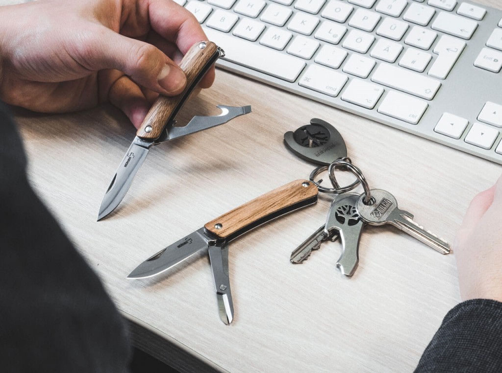 S délkou čepele 5,2 cm je Boker Plus Mini Tech Tool mnohem univerzálnější, praktičtější a efektivnější než mnoho známých nožů na klíčenky, a přitom je stále v rozsahu velikostí, které jsou ideální pro použití klíčenky. Malá verze Tech Tool nabízí stejné prémiové funkce jako její velký bratr. Rukojeti s váhami prémiového zebrawoodu promění spíše technický nástroj Boker Plus Tech Tool na elegantní pánský nůž. Světlé dřevo má jasný prodloužený vzor a je ideální k zastrčení do kapsy obleku. Leštěná a dutá čepel vyrobená ze Sandvik 12C27 a pevná smyčka a kroužek na klíče jsou součástí standardní výbavy Tech Tool. Má také nůžky.