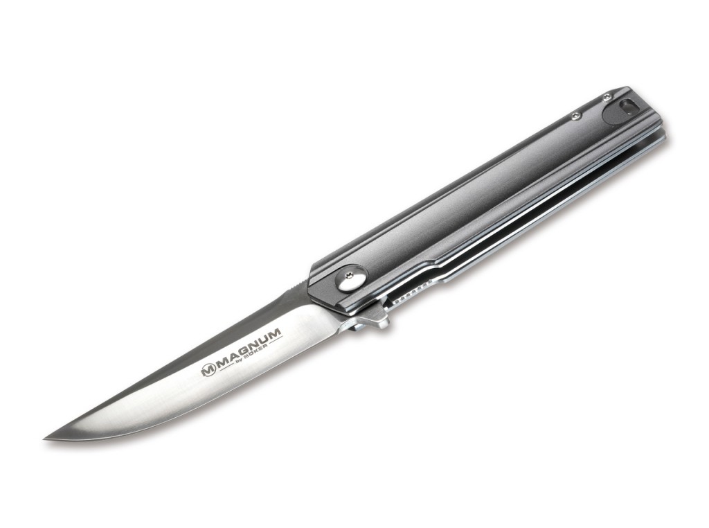 Magnum Roshi Rails je technická interpretace složky Tanto s pevným úchopem a jasnými liniemi. Čepel z nerezové oceli 440A má ploutev, která vylepšuje efektivnější design tím, že zabraňuje sklouznutí ruky po čepeli. Linerlock je chytře integrován do obrysu nože. S klipem.