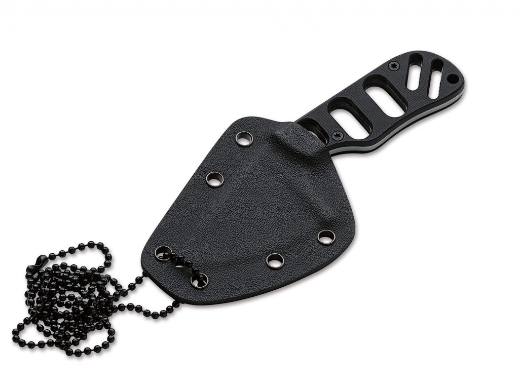 Designový jazyk Chad Los Banos je pravděpodobně většině našich zákazníků více než známý. Ačkoli to není první Subcom Fixed Blade, s Böker Plus SFB Neck představuje design, který se velmi blíží původní složce Subcom. Se svými kompaktními rozměry a charakteristickými stupnicemi a také hlubokým vybráním pro ukazováček je krční nůž více než kompaktním všestranným nástrojem pro každodenní použití. Dodáváno s Kydexovým pouzdrem a kuličkovým řetízkem.