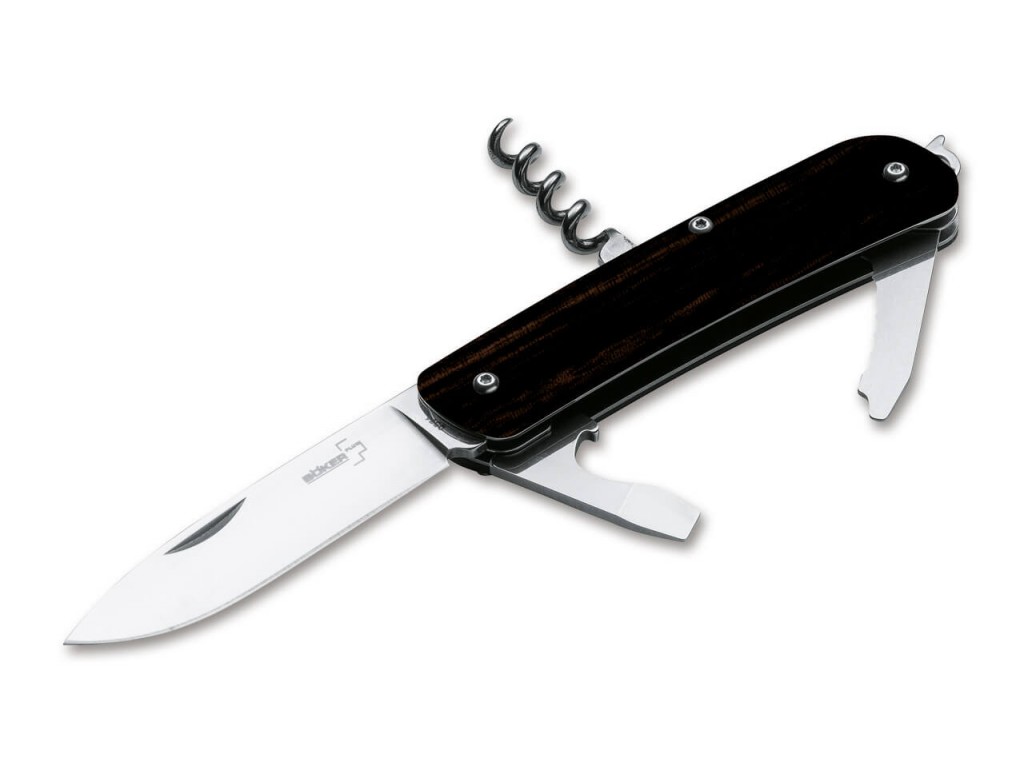 Historie Boker Manufactory začala v roce 1869 sportovním nožem Boker, předchůdcem všech moderních multifunkčních kapesních nožů. Po téměř 150 letech úspěšné historie modelů nastal čas vzít tento tradiční koncept do současnosti. Modernizovaná verze je založena na pevných ocelových deskách, díky kterým je nůž extrémně robustní. Rukojeti s váhami z prémiového ebenu promění spíše technický nástroj Boker Plus Tech Tool na elegantní pánský nůž. Tmavé dřevo dodává noži elegantní a stylový vzhled - ideální pro zastrčení do kapsy obleku. Je vybaven velkou čepelí (12C27) a následujícími nástroji (4Cr13): rozbíječ skla, velký šroubovák s otvírákem na lahve a ohýbačkou/odizolovávačem, malá zoubkovaná čepel se špičkou šroubováku, výklopný otvor pro šňůrku, vývrtka.