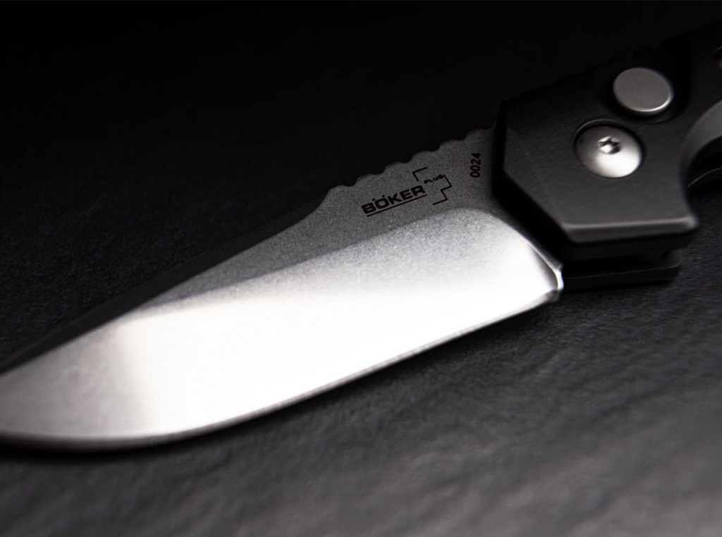 Boker Plus Thunder Storm Auto od Borise Manasherova je robustní taktický nůž. Díky výraznému chvění prstů je velmi praktický v jakékoli poloze úchopu. Rychlé změny polohy na zpětný úchop nebo naopak podporují hřebeny v hřbetu čepele a rukojeti. Váhy černé rukojeti jsou frézovány z hliníku s odlehčením. Čepel AUS-8 má lehkou povrchovou úpravu stonewash a automaticky se otevírá stisknutím tlačítka. S rozbíječem skla z karbidu wolframu, otvorem na šňůrku a přemístitelnou sponou pro hluboké nošení (sklopná).